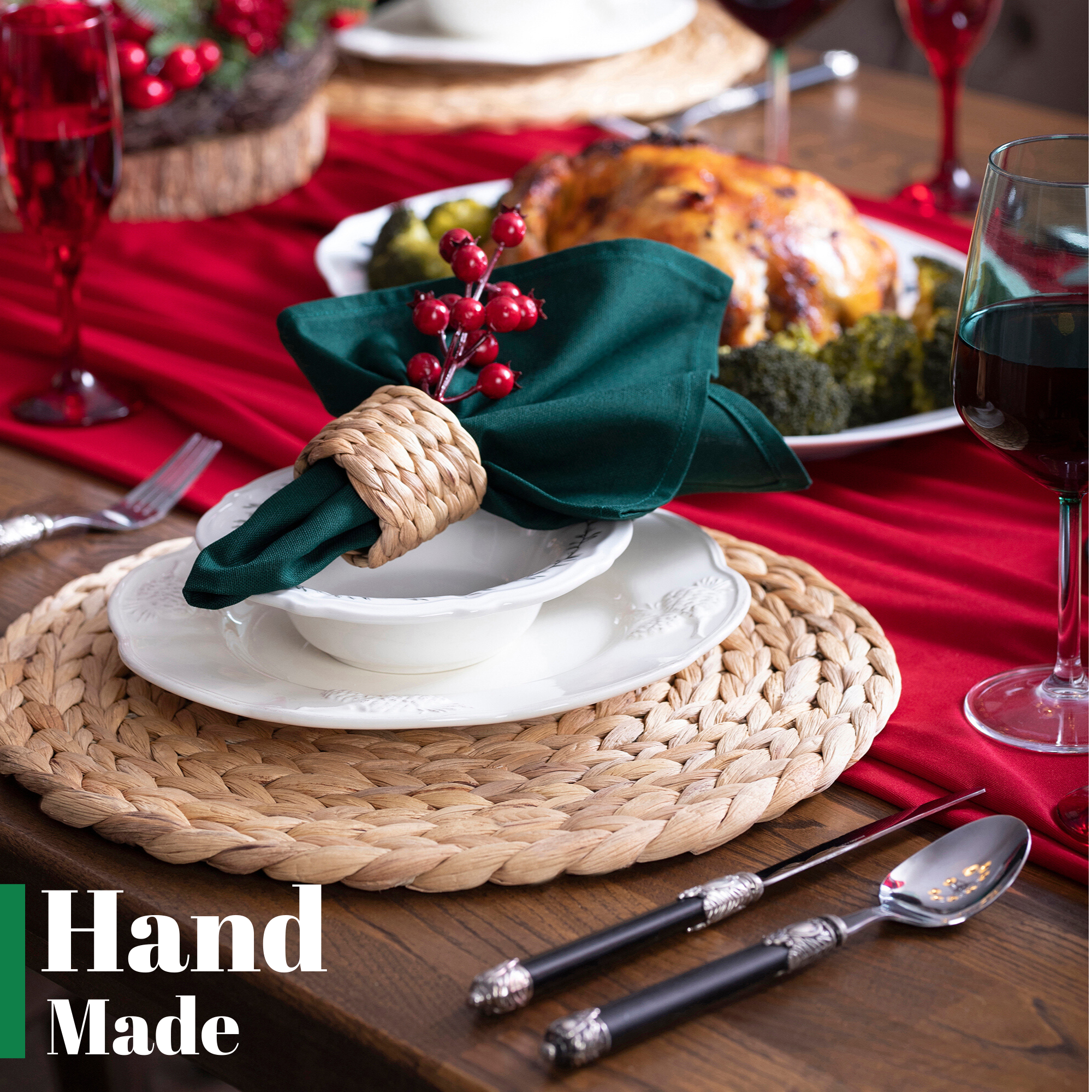 DecoraWell Woven Napkin Rings Set of 12, Rattan Napkin Rings for Christmas, Baby Shower, Birthday, Rustic Wedding Decorations, Farmhouse, Boho Tabletop Decor Set(Natural Hyacinth)