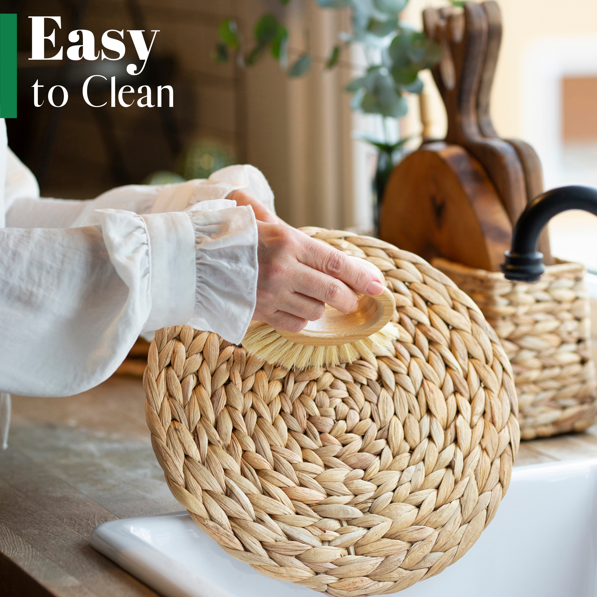 Round Woven Placemats Set of 6 | Handmade Wicker Placemats with Bamboo Brush | Rattan Chargers for Dinner Plates | Rustic Boho Placemats (Round Natural, 13.5 in)