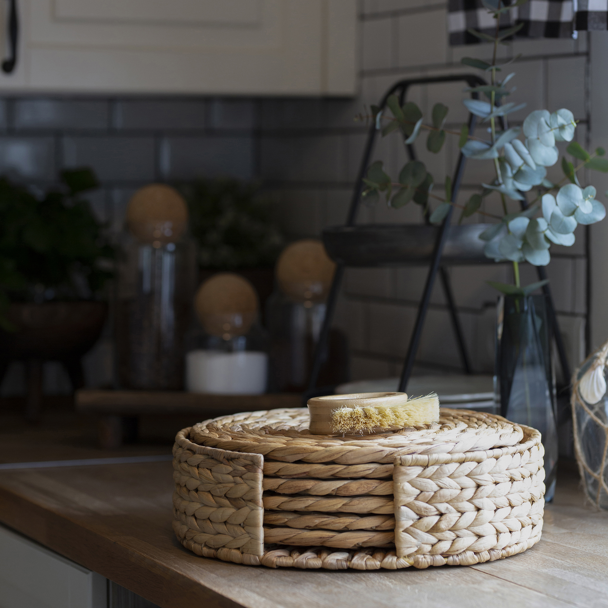 DecoraWell Handcrafted Placemats Set is meticulously made from natural water hyacinth by Vietnamese artisans. These elegant placemats protect your table from high temperatures and scratches while adding a rustic touch. Perfect for daily use and ideal for special occasions, they also make a great gift option with their capacity for six. Elevate your dining experience with DecoraWell’s touch of elegance.